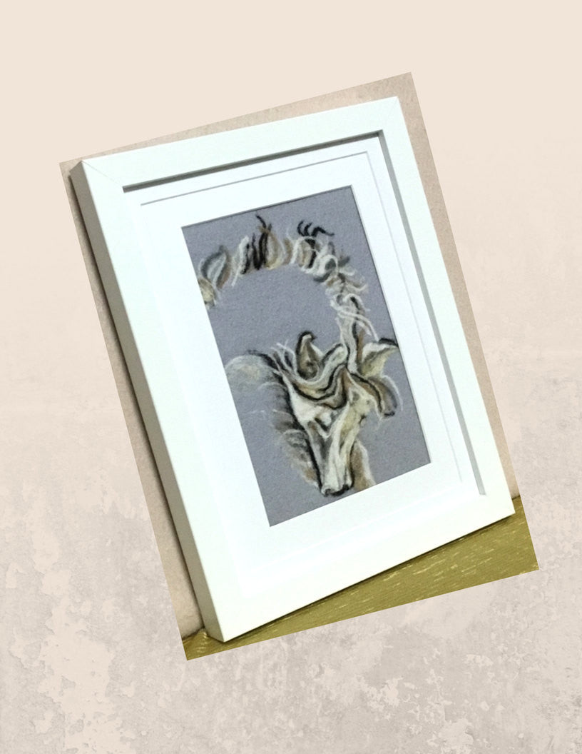 Framed Small Wool Picture, Horse Design, I Needle felted by hand,