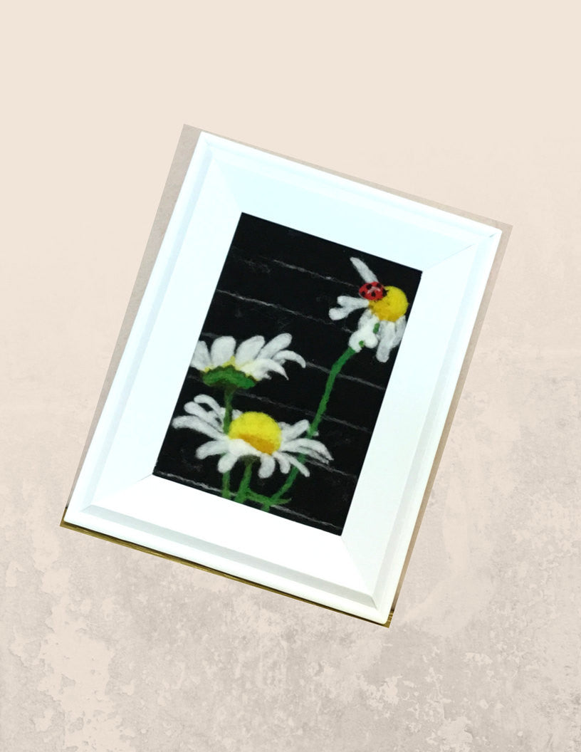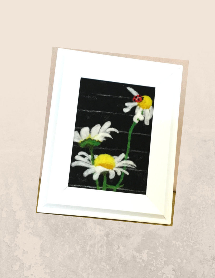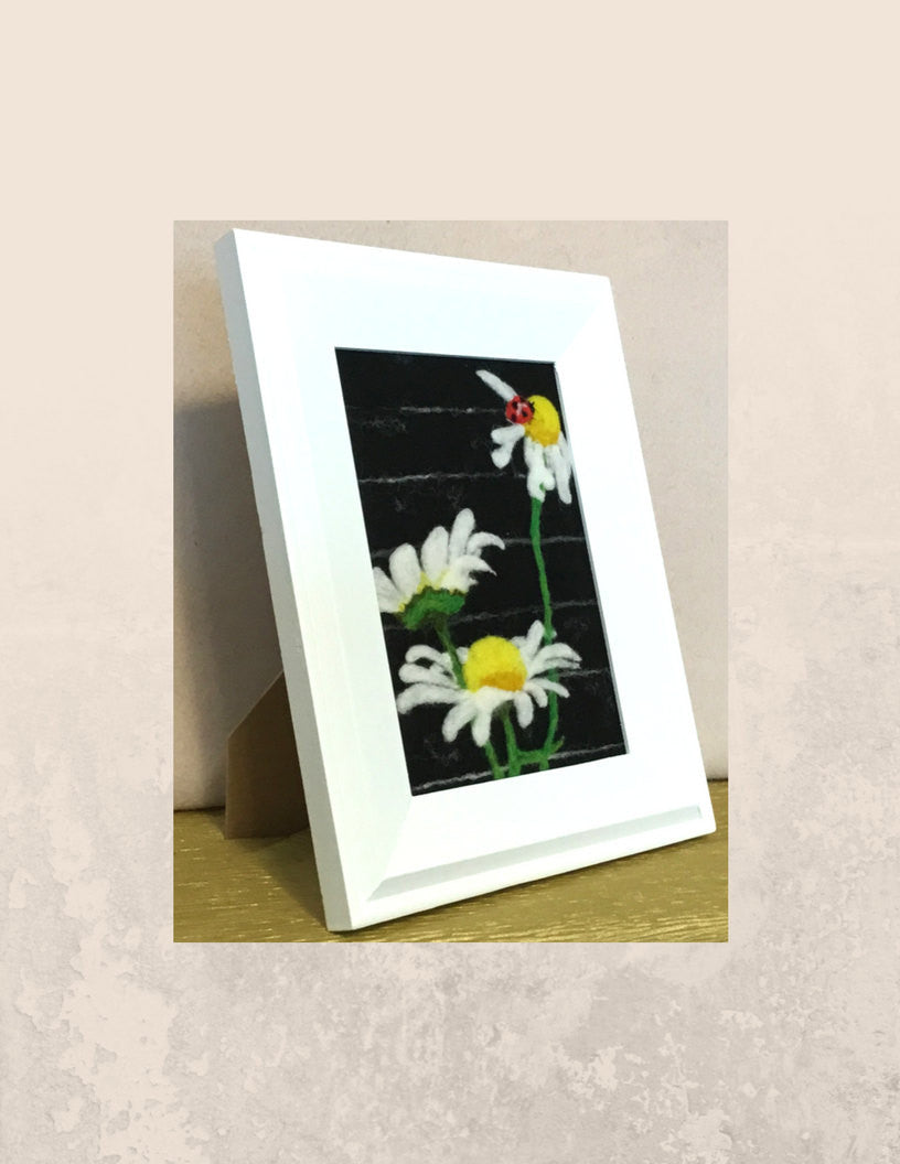 Framed Wool Picture, Daisy Design, I Needle felted this shabby chic, Daisy design