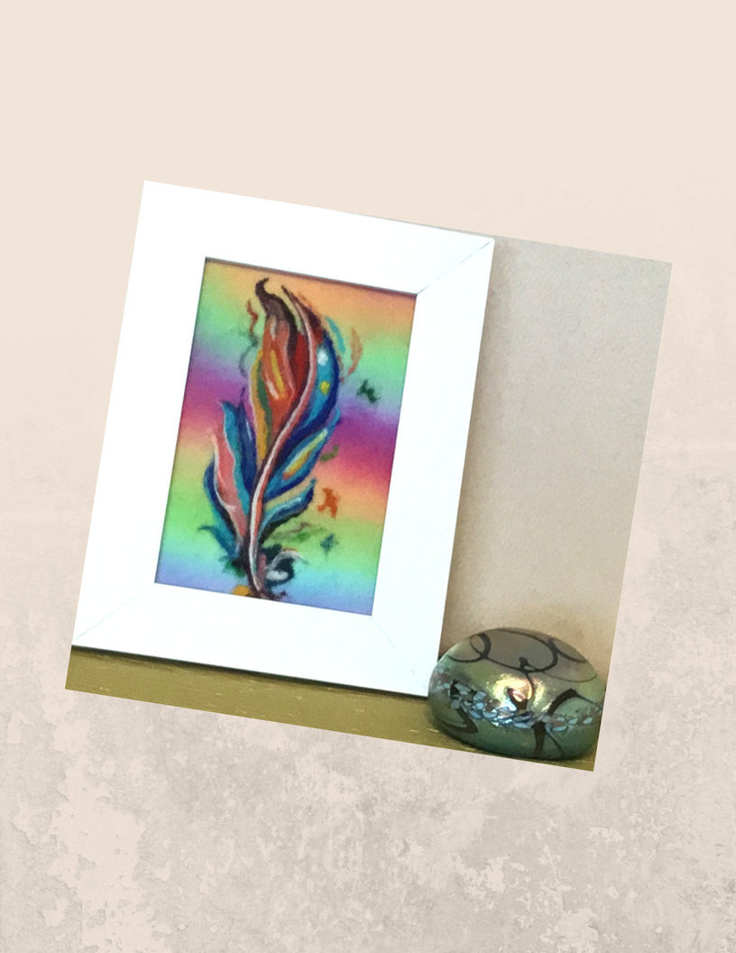 Framed Wool Picture, Feather Design, I Needle felted by hand,