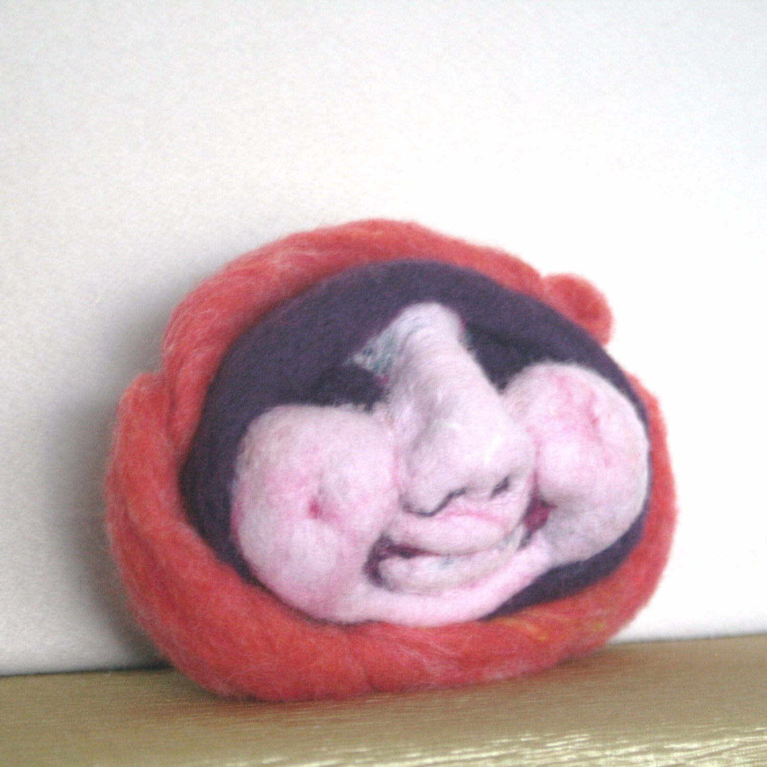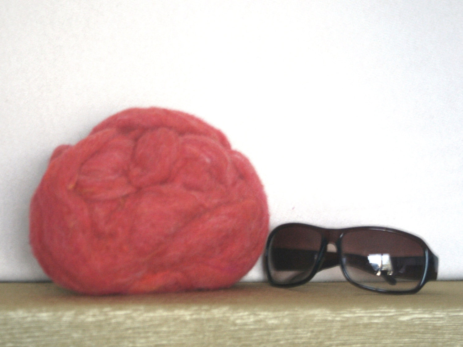 Needle Felted Wool Figurine, I Needle felted this wool sculpture withPink and Plum of Merino Wool sitting on a Cloud of Coral Felting Wool.