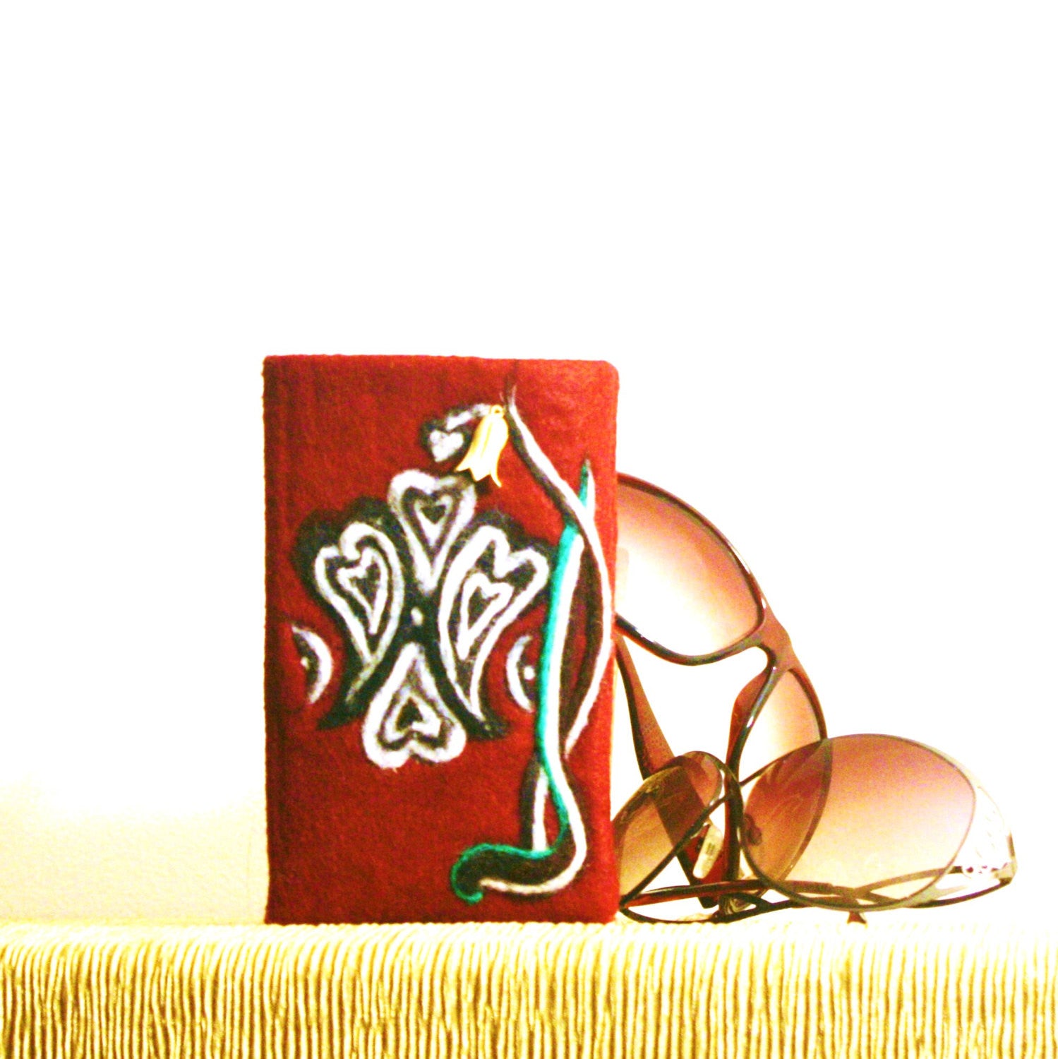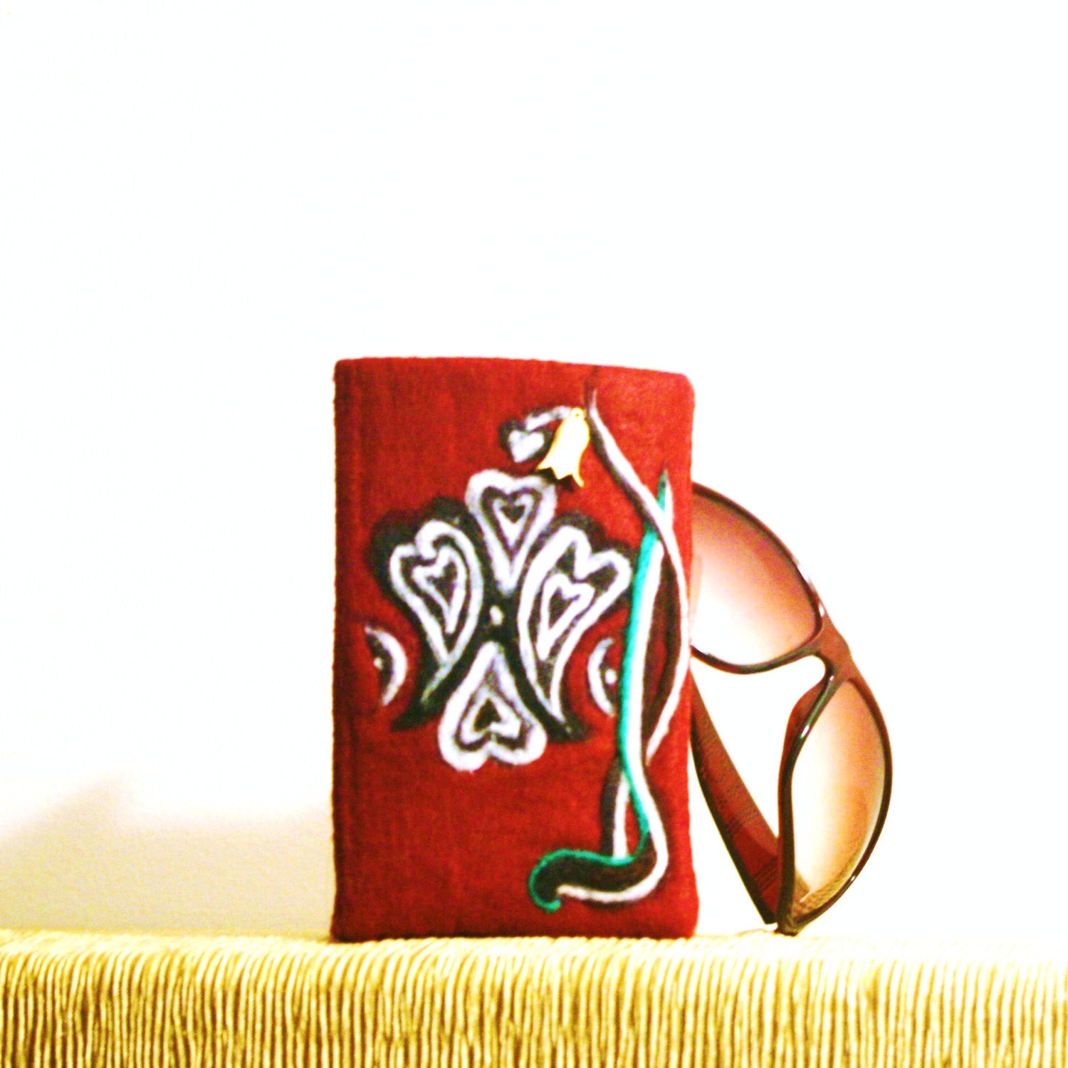 Red Felt Glasses Sleeve ,I felted by hand,this design of a lillybell,