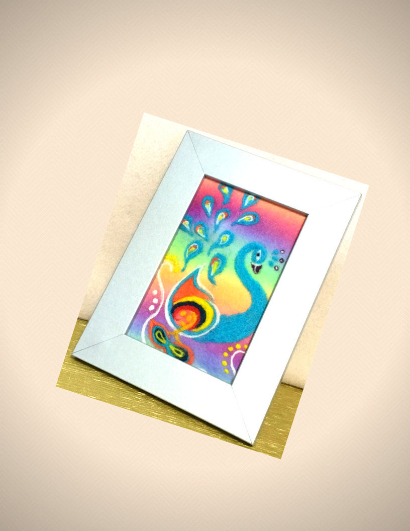 Small Framed, Wool Picture, Peacock Design, I Needle felted by hand,