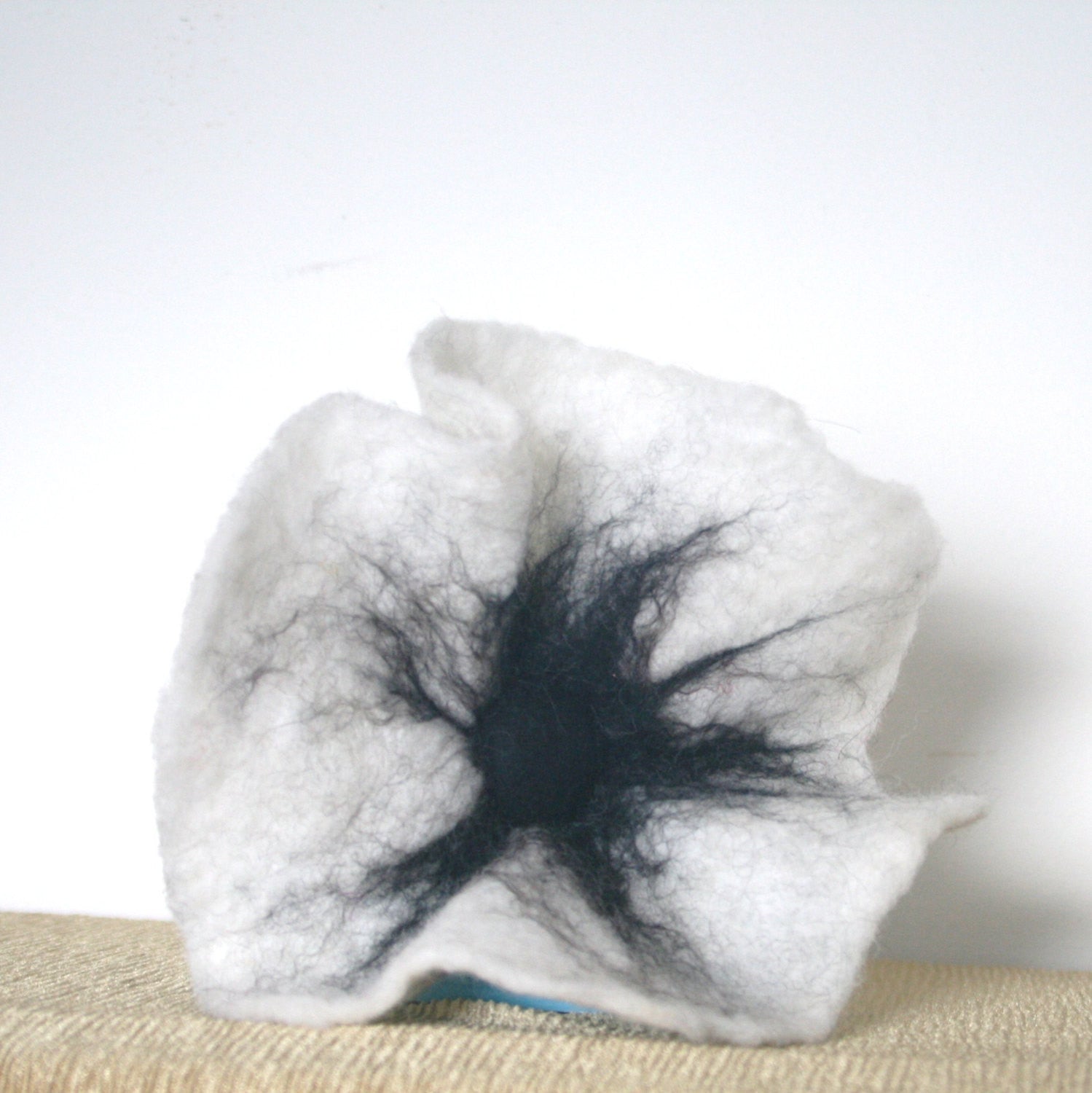 White Wool Poppy, I wet felted by hand,this poppy in white Merino wool,