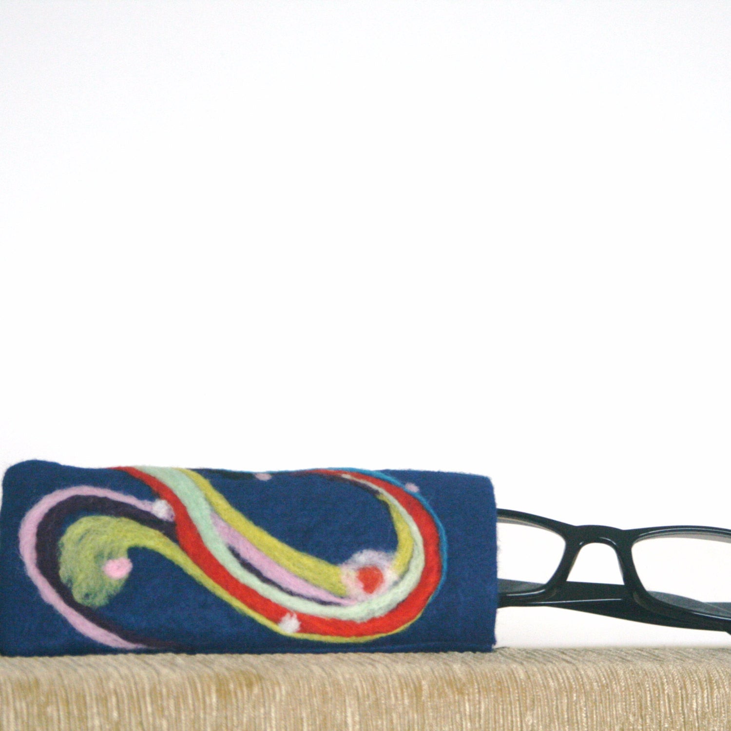 Wool Glasses Sleeve, Colorful Felt reading glasses sleeve.