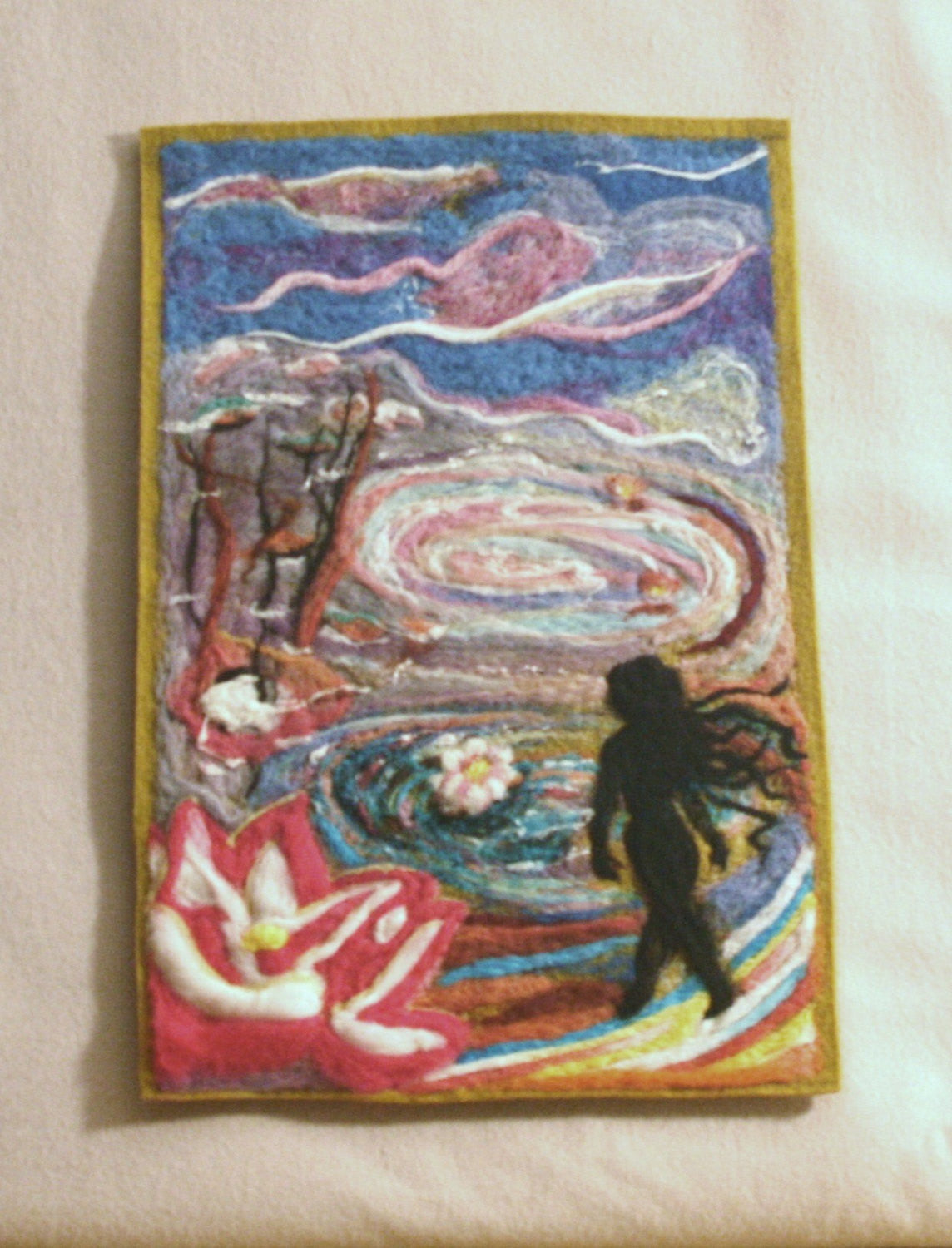 Wool Needle Felted Picture, Desk size Lotus Spirit.