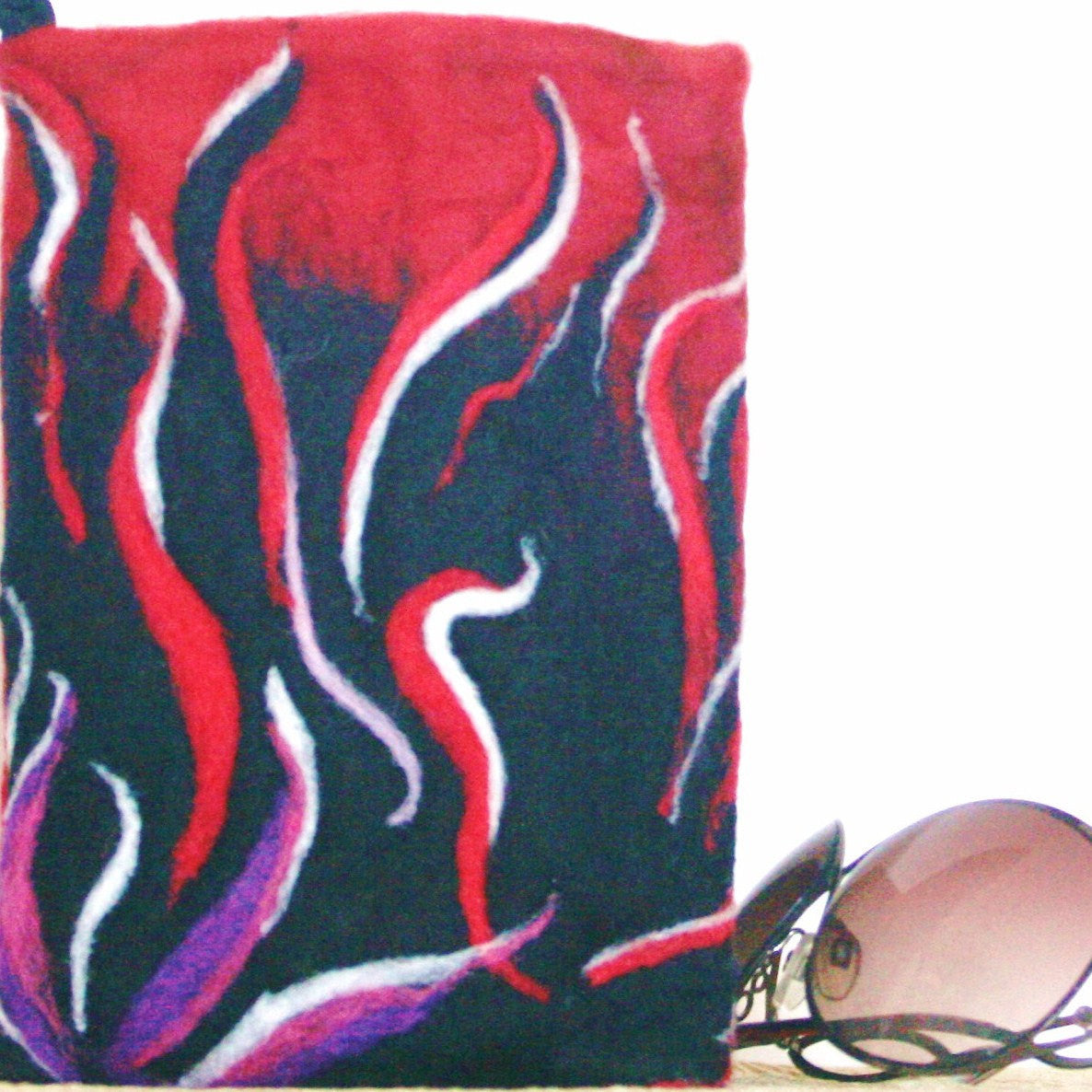 Wool Wristlet Sleeve, I felted by hand this cover in red and black Merino wool,